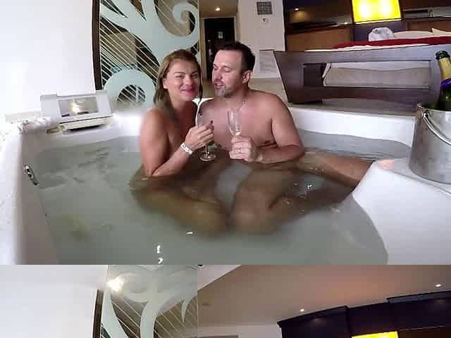 Risky fucking in public hotel pool!