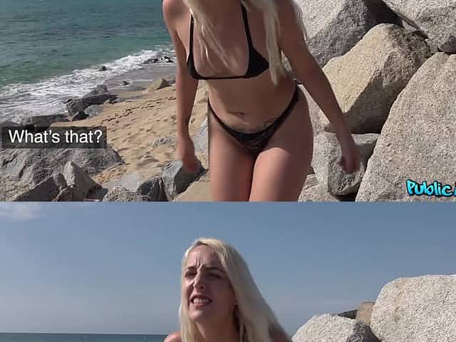 Hardcore outdoors anal fucking on the public beach - Angie Lynx