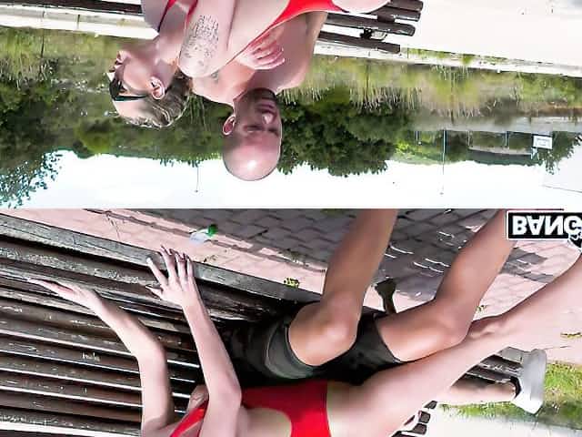 Cute blonde girl PUBLIC street sex orgy gangbang by guys with big dicks in broad daylight