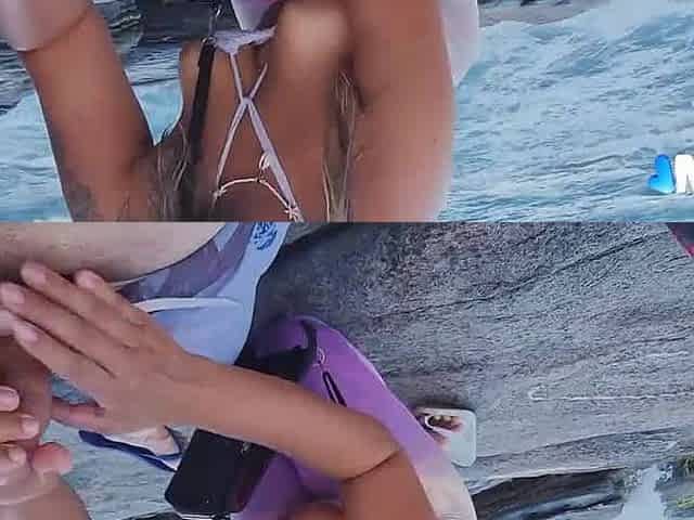 I drilled my ally's spouse in vacation hidden in bushes on a public beach