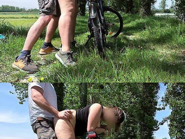 Outdoor facefuck and creampie for breasty cyclist