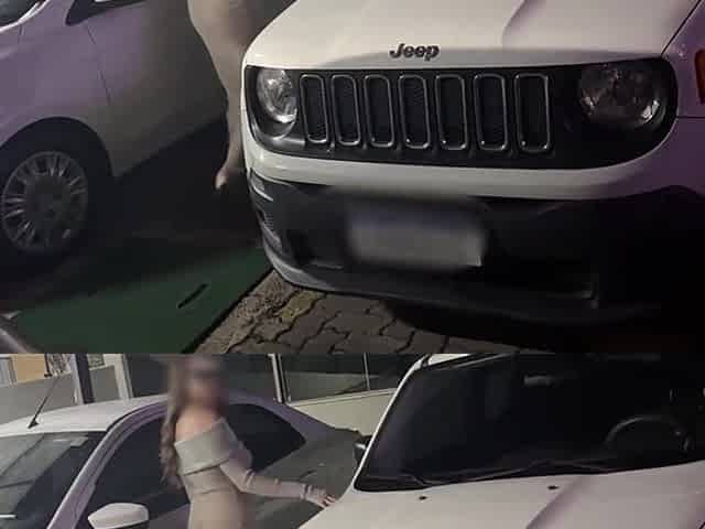 A lady masturbates in a car in a parking lot Teasing a love button with a vibrator