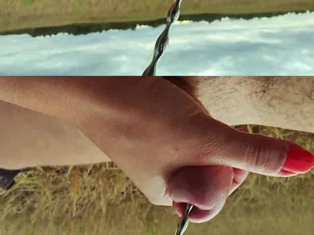Pretty public urethral plug in field - real sounding outdoor cum 4K