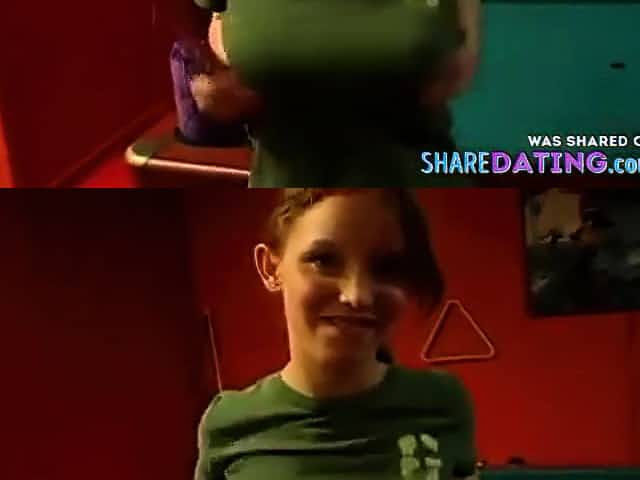 Amateur With Puffy Nipples Toys On Pool Table