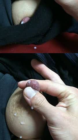 I slap my milky tits with your cock