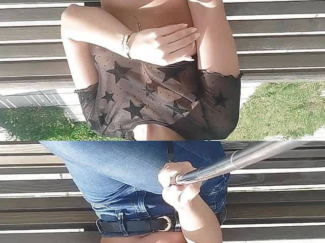 "see-through blouse shows tits in public"