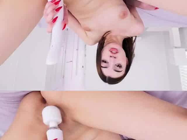 Cute brunette hair masturbates to 3 intensive orgasms in a row