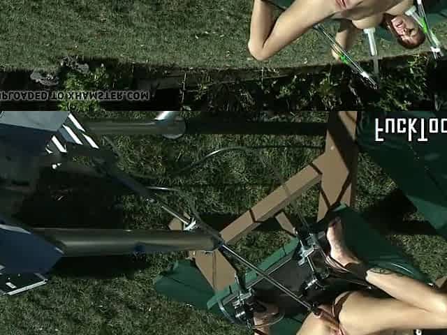 Busty nipple pumped babe toyed outdoors