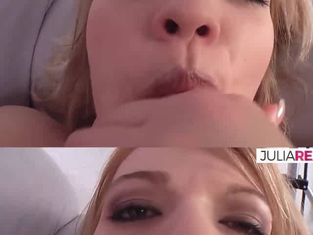 "Blonde Wife Nataly Real Gets Pumped While Resting in Cuck's Lap"