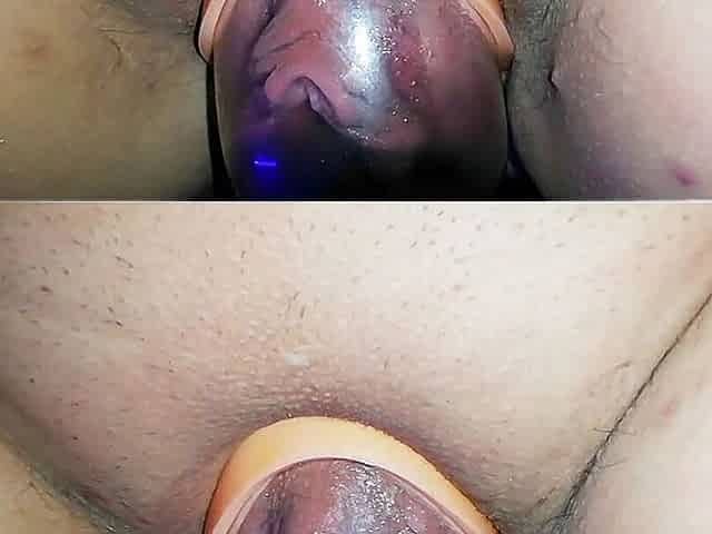 She moans and climaxes happily when putting the tip my dick in her cunt!