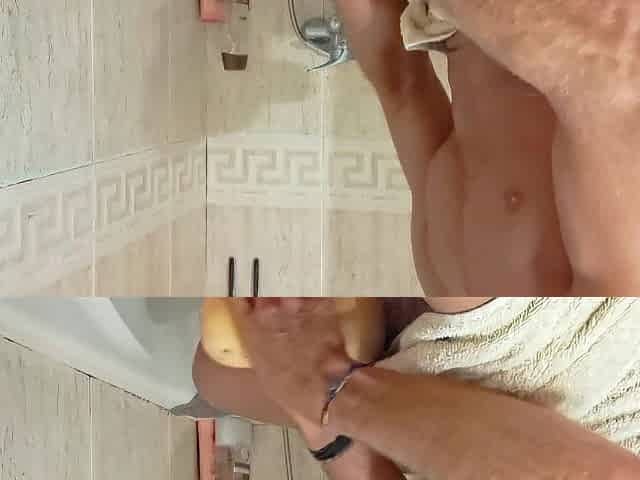 Pumped up male BANGING a toy in the SHOWER and cumming all over his body