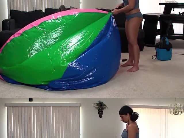 Blown up a huge beachball via electric pump
