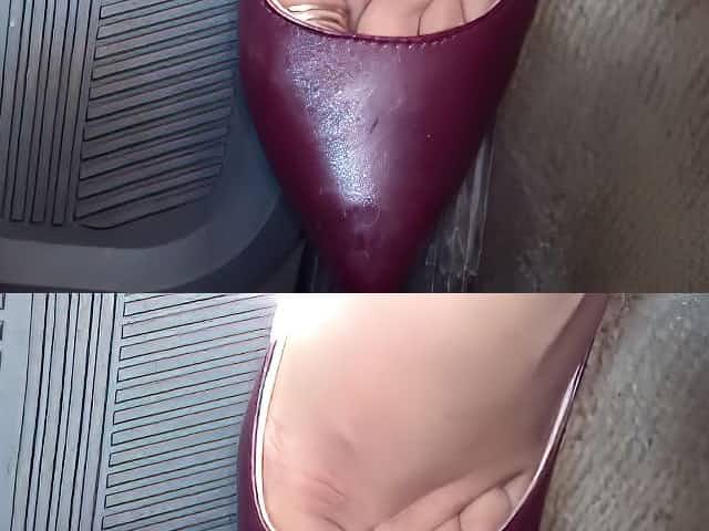 Moisturizing dry feet with cum before party + Dangling pumps and shoeplay