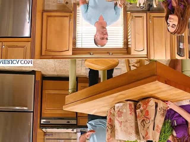 Zippers down and gives him an amateur pump in the kitchen