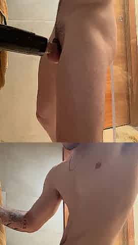 Pumped up male BANGING a toy in the SHOWER and cumming all over his body
