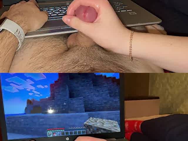 Playing Minecraft with Stepsister (Lengthy tugjob and post climax punishment)