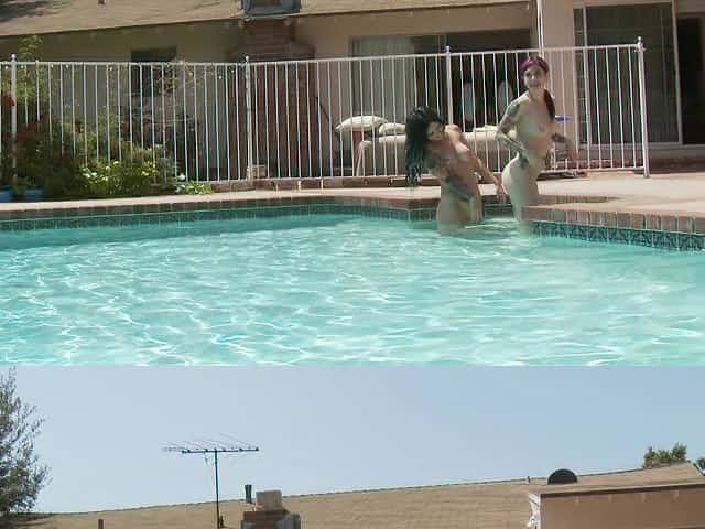 Things got steamy at the pool as two lesbians put their hot tongues to use