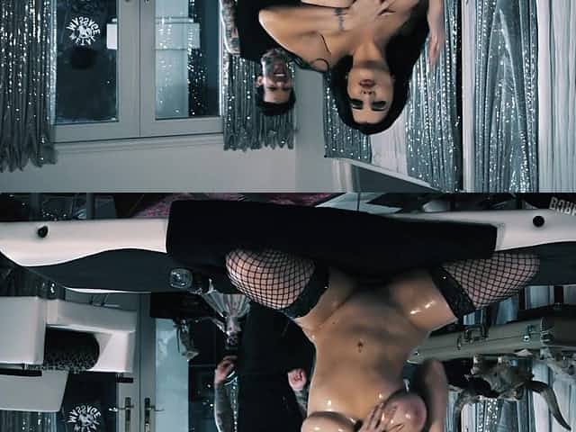 Sexy rocker chicks in bikinis rub each other down and fuck