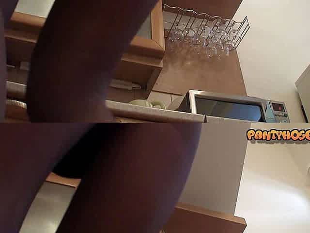 Punk bad girl in the kitchen in pantyhose feeling naughty