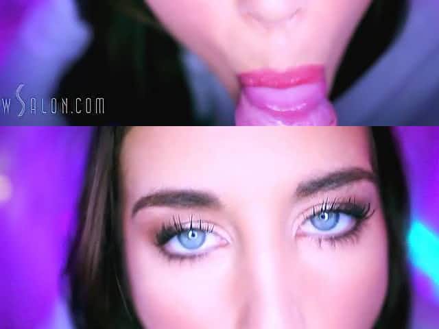Blue- eyed brunette hair, Felicity Feline is kneeling on the floor whilst sucking a punk hard dong