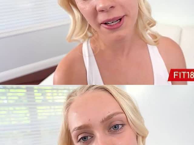 Slim blond teen with tiny, natural bazookas is groaning whilst riding a punk hard rod