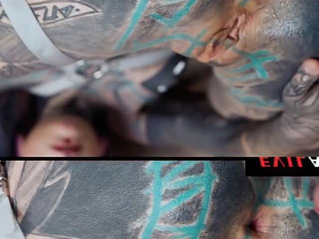 Large as, Black playgirl with tattoos, Medellin is sucking a punk hard rod and eating some cum
