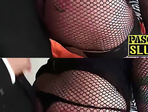 Seductive brunette hair in erotic nylons is riding a punk hard wang in advance of getting a golden shower