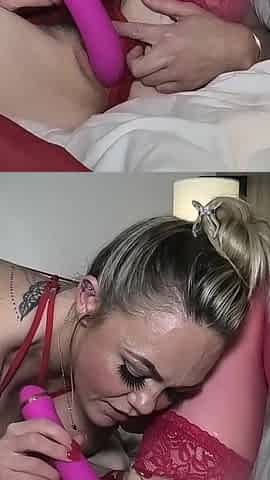See this large tit older blondie getting cunt licked by her neighbour and likes it
