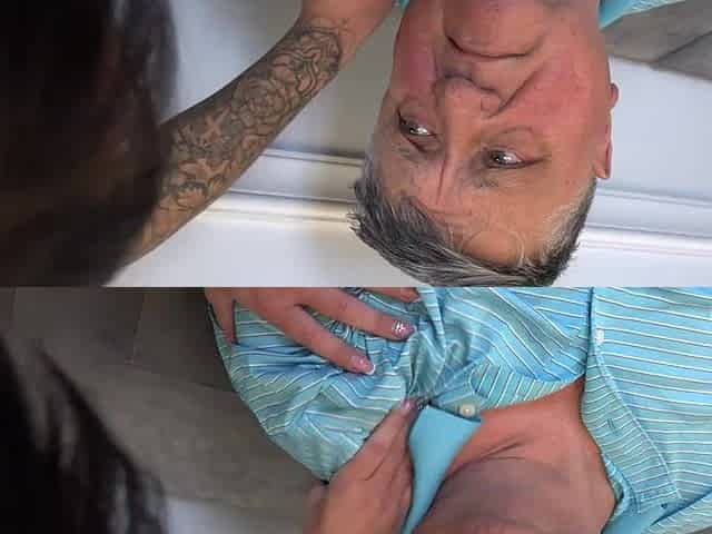 Marvelous nymphet helps old dude relax and gets her snatch licked in award