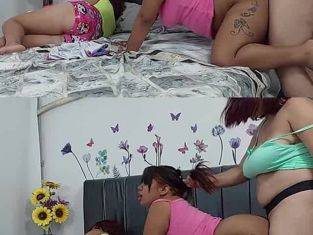 I'm with my ally at home and my stepdad bangs our snatch very hard