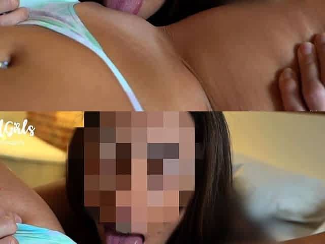 Brunette Hair with large boobs is widening her legs wide open and getting her vagina thoroughly licked