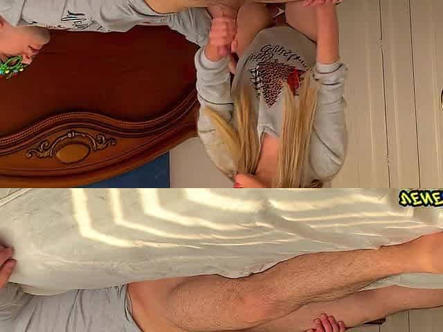 A young hot blonde slut with perfect pussy lips spreads her legs and gets fucked on the chair