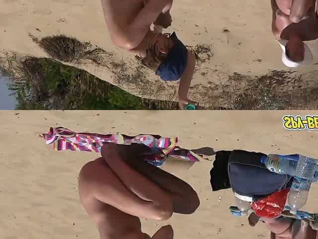 Big pussy lips close up voyeur video of amateur milf on the beach