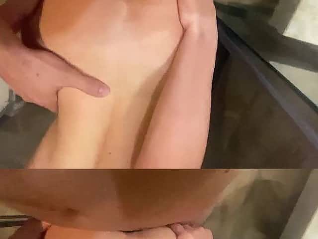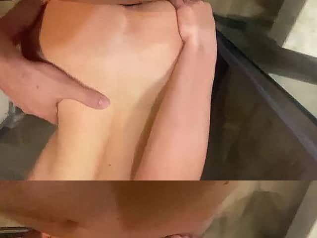 Petite babysitter hottie opens her pussy lips for older stud's hard tool