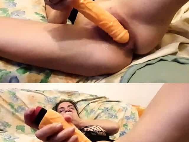 Amateur girl pumps her pussy and uses a huge toy