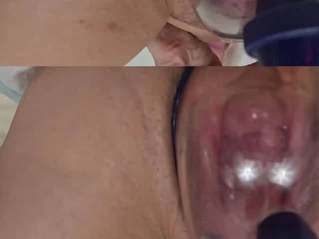 Pussy pumping and squirting with dildo and vibrator