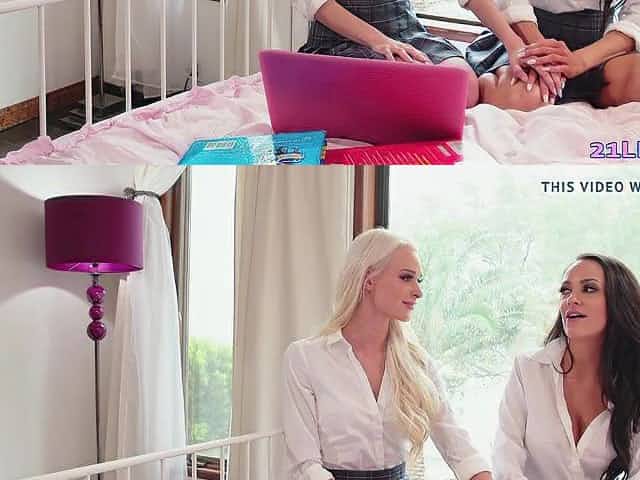 Passionate bedroom anal sex with lesbians Neve and Kaylee on