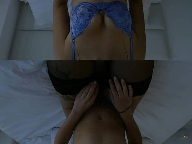 Favourite time of the night. Laying over his lap having my snatch stretched.