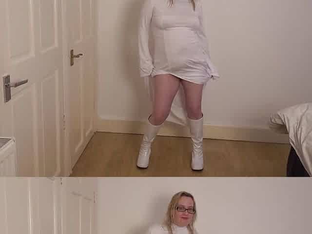 "Princess Leia Cosplay Dancing Striptease in Pvc Boots"
