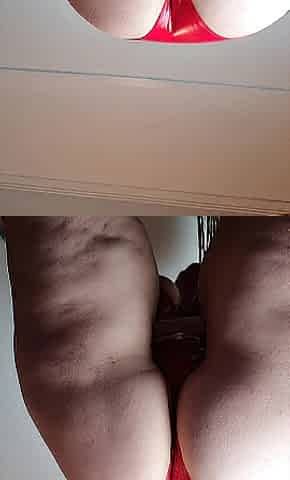 Large Booty mother I'd like to fuck Teases in Red PVC Brassiere and Pants
