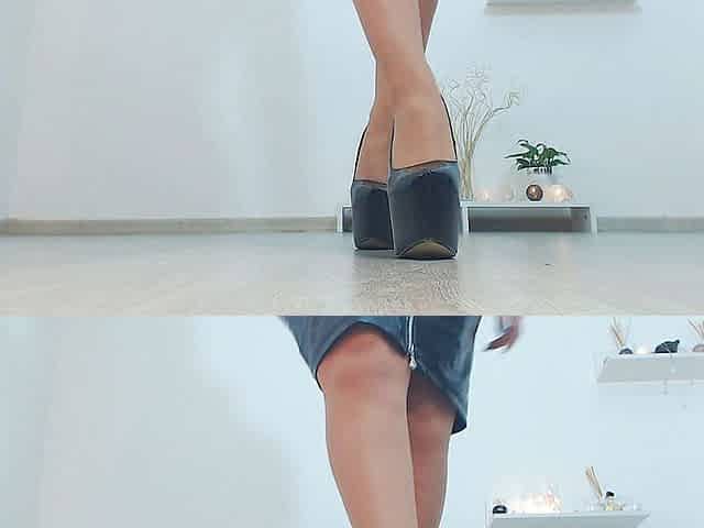 Findom teasing in PVC, nylons and on very high heeled platforms