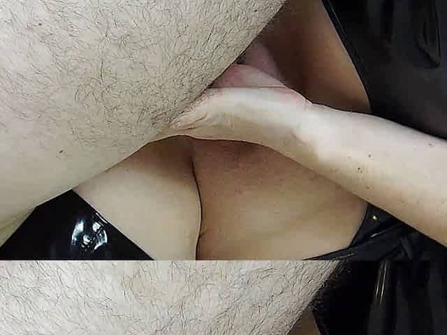 See this kinky PVC hotty masturbate with slippery fingers