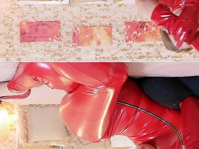 Red PVC housewife gets what she deserves