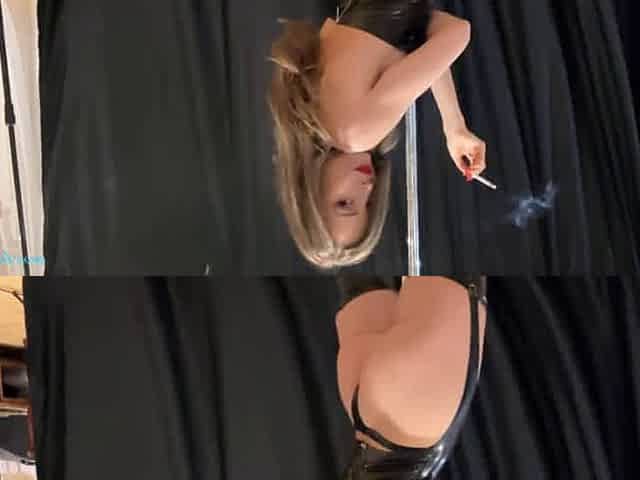 British slut Natalie K smoking & fingerfucking outdoors in pvc