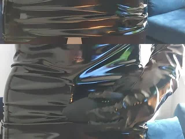 Annabel Widening her Legs in a PVC Suit, Seamed Stockings and Heels