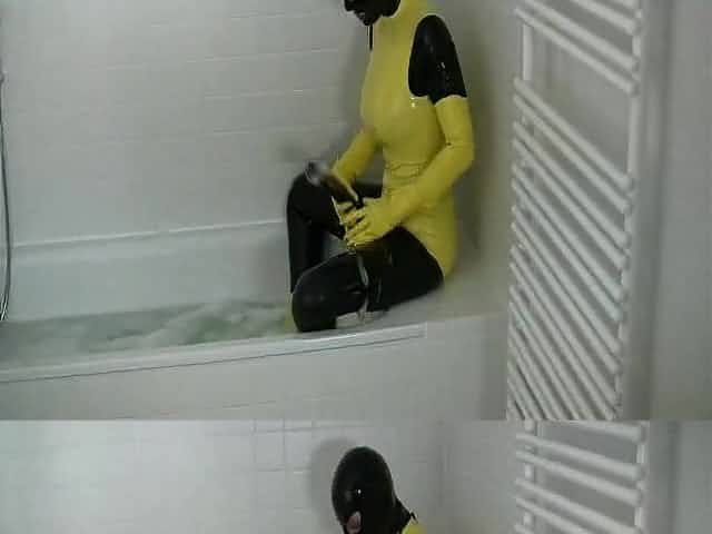 Latex lesbian babes enjoyment in baths..