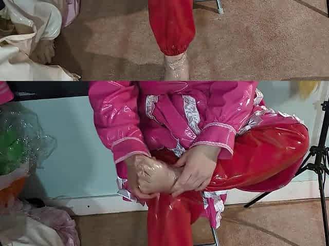 PVC Bonnet Sissy Layering and Laying in Daybed