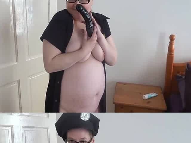 "Police Woman Fucking Black PVC Dildo"
