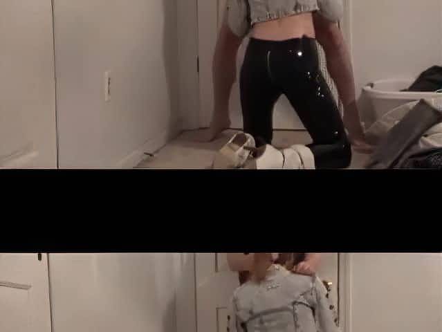 skinng girl getting fucked in tight PVC leggings
