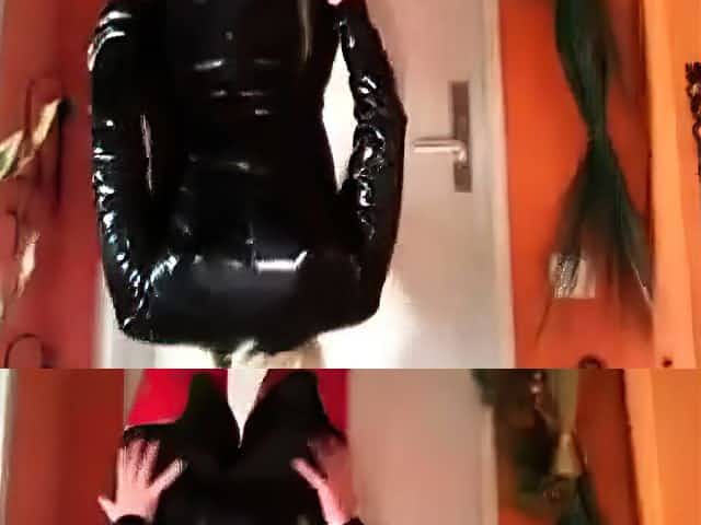 gorgeous sexy shiny tight body suit slut in pvc gloves sucks and fucks